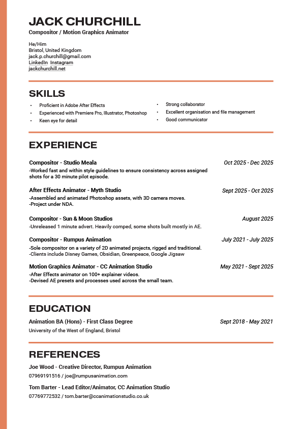 Hello! I'm Jack. I'm a freelance After Effects compositor and motion graphics animator based in Bristol, UK. I enjoy making things look nice & shiny, making things look old & crunchy, and I really like figuring out new ways of doing both those things.
